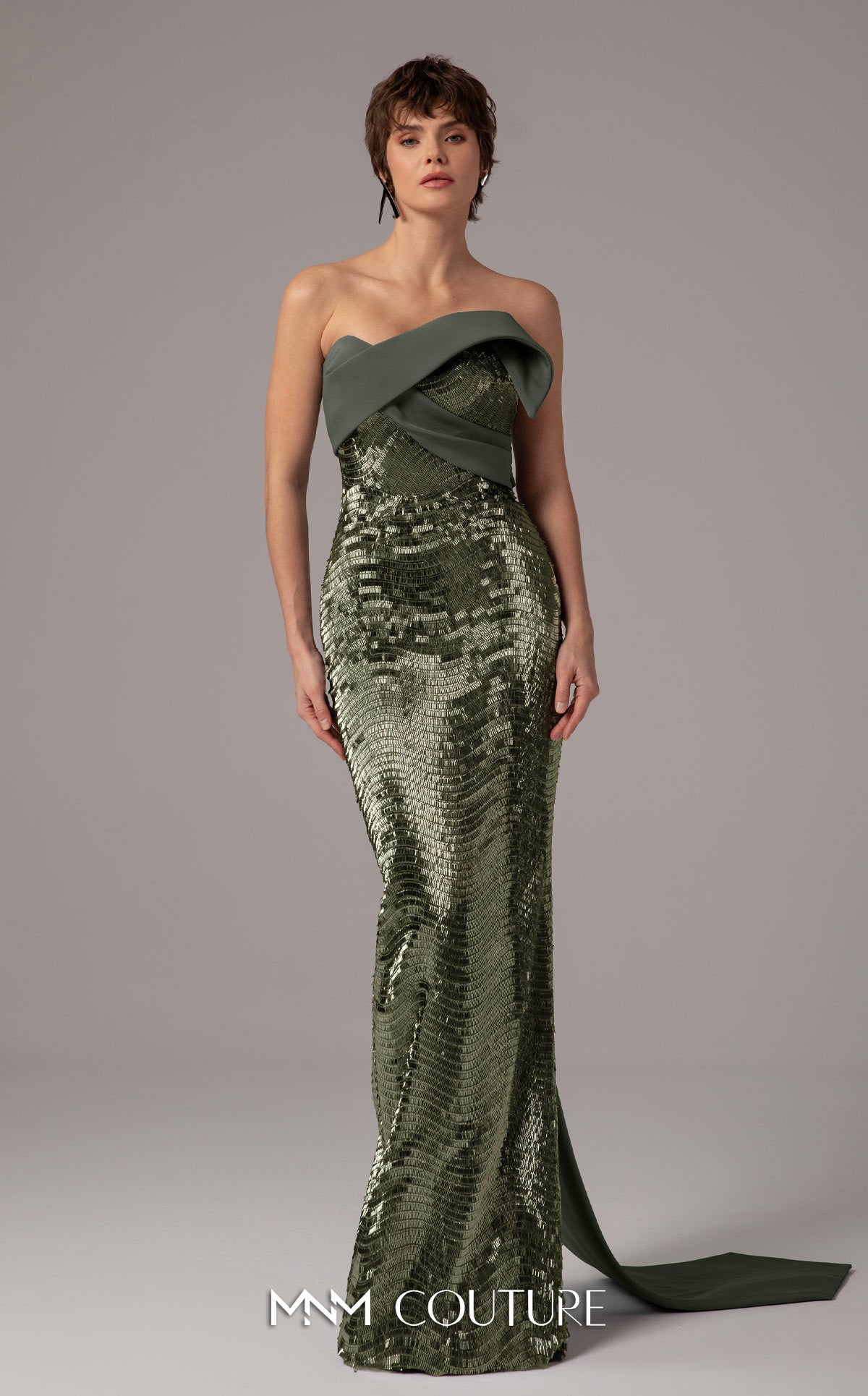 Azaria | Strapless Embroidered Column Gown | MNM Couture E0087