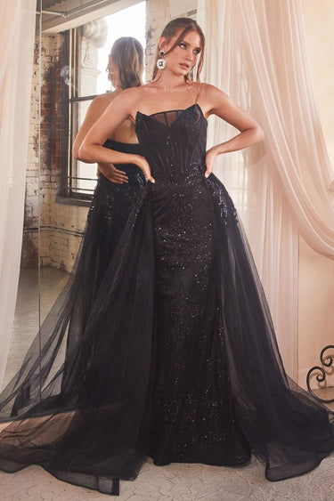 Extra Dazzle | Strapless Glitter Gown With Removable Tulle Overskirt | LaDivine J858